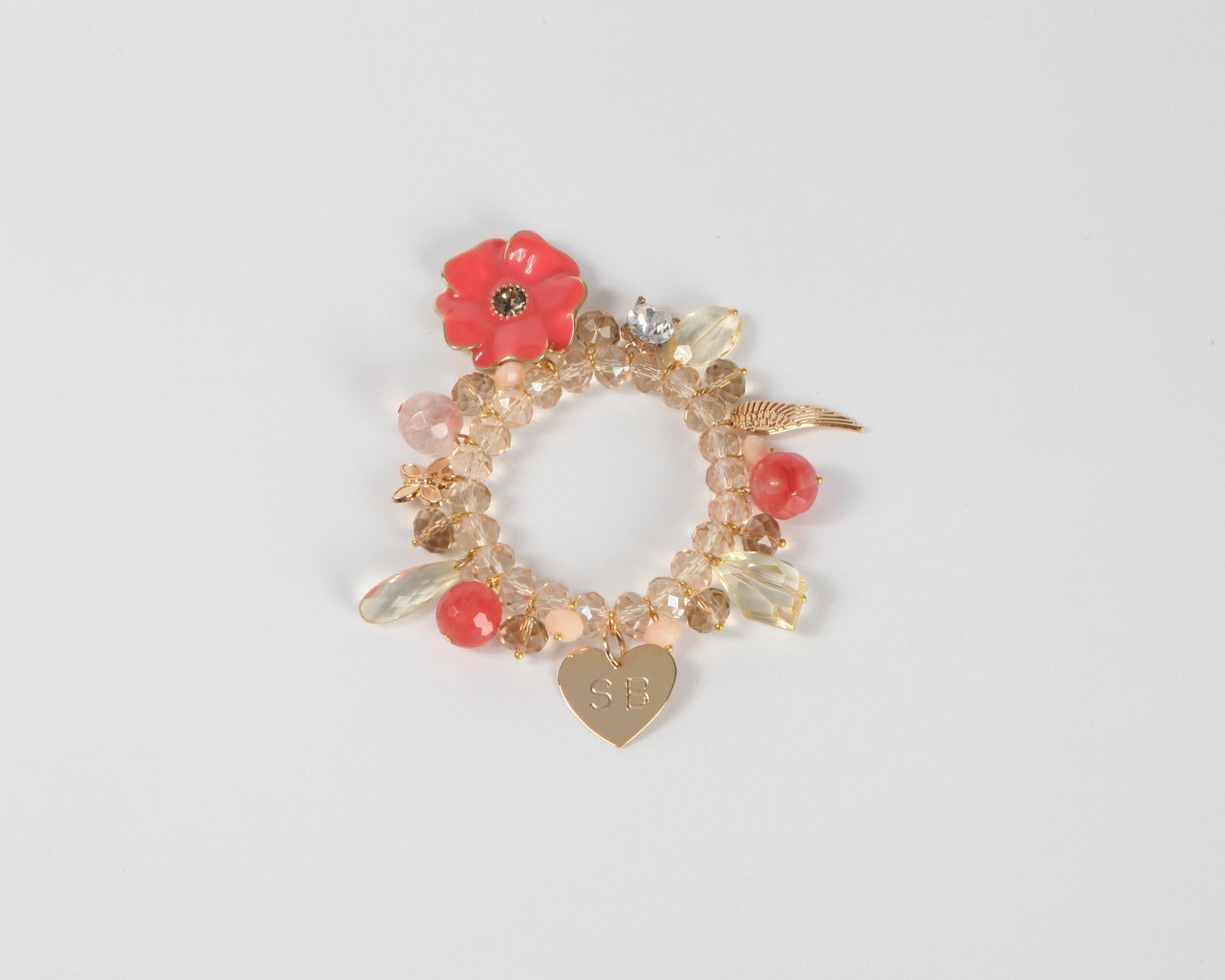 Charms are the main characters of my creations: there are various shapes, materials and colors. I create highly customized models, with huge attention to details and entirely handmade. My aim is to realize unique bracelets at affordable cost. The only common thing is an heart-shape medal in which is engraved my logo. The medals are plated in 24 KT, the stones maintain their brightness over time.